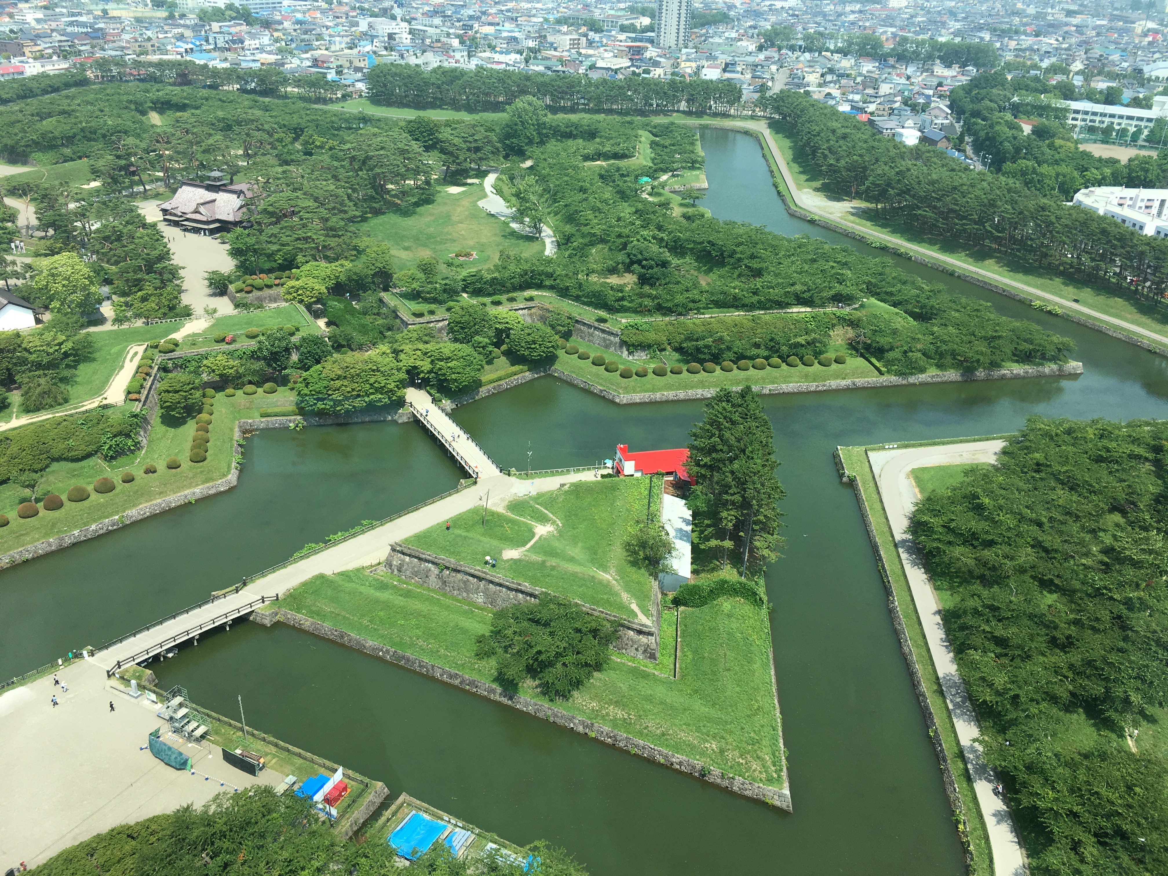 五稜郭タワーの展望台からは、五稜郭のきれいな星形を見られるだけでなく、函館山や津軽海峡も観ることができます。